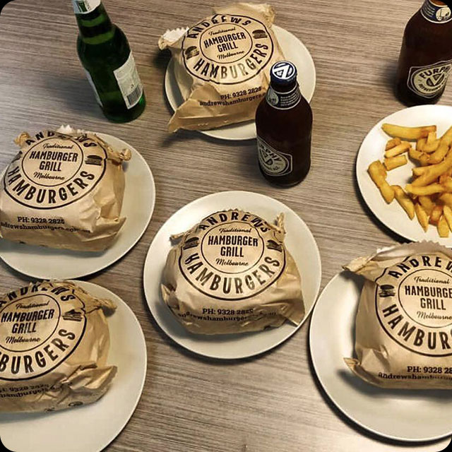 For larger orders (over $150), you can pre-order Andrew's Hamburgers.